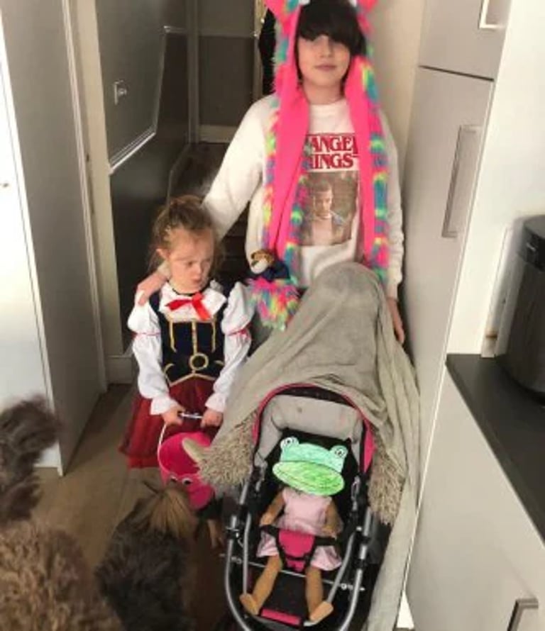 And more frequently than we might notice, when all our batteries are over 50 per cent, we step into Purdy’s world by raiding the costume box and whacking Alexa up to a million decibels. We do dress up in costume outfits much more than any normal family.