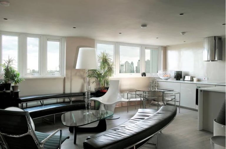 I changed the layout in my own east-facing kitchen to open plan, and took out the eye-level cabinets for a more spacious feel. Then added rounded furniture to promote the flow around the space. A round glass coffee table reflects the light and the views, and plants placed close to the window energise the interior.