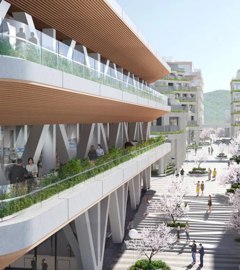 Everything is human-centred and integrated with a focus on wellbeing. Powered by hydrogen fuel-cell technology, the buildings are designed to “take care of basic needs and enhance daily life”, to the extent that sensors connected to AI will check the health of residents and even suggest what food to eat to improve both wellbeing and happiness, and prompt when exercise or fresh air is necessary. Groceries will be ordered automatically and menial jobs such as cleaning will be looked after by in-home robots, freeing up time for the residents and helping to remove stress.